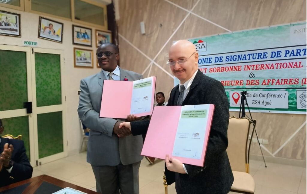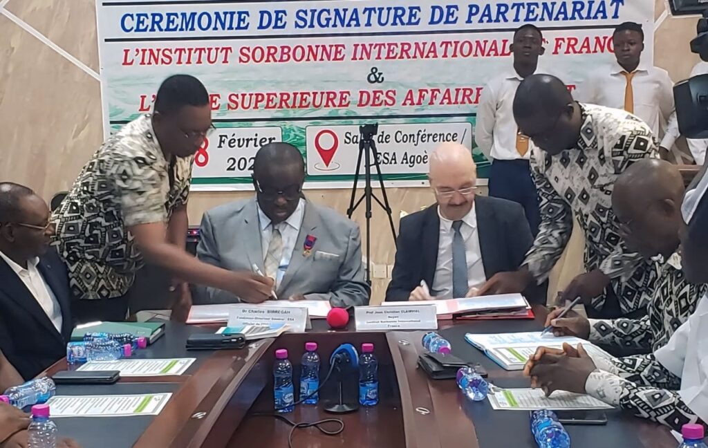 L’École Supérieure des Affaires (ESA) continue sa quête d’excellence en signant un partenariat historique avec l’Institut SORBONNE International (ISI), une prestigieuse université française. La cérémonie de signature de ce partenariat s’est déroulée, ce mardi 18 février 2025, sur le campus d’Agoè à Lomé, co-présidée par le Directeur Fondateur de l’ESA-Togo, Dr Charles Birrégah, et le Doyen de l’ISI, le Professeur Jean-Christian Clairveil. Le Président du Conseil scientifique de l’ESA, également ancien ministre de l’Enseignement Supérieur, Professeur Octave Nicoué Broohm, était présent.