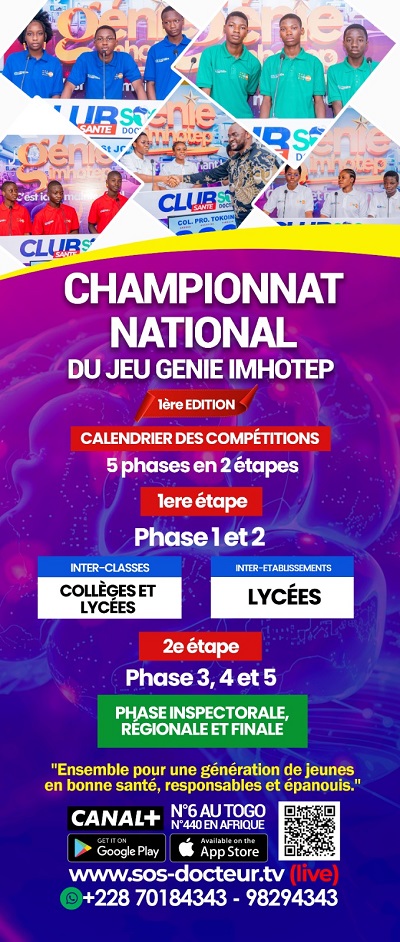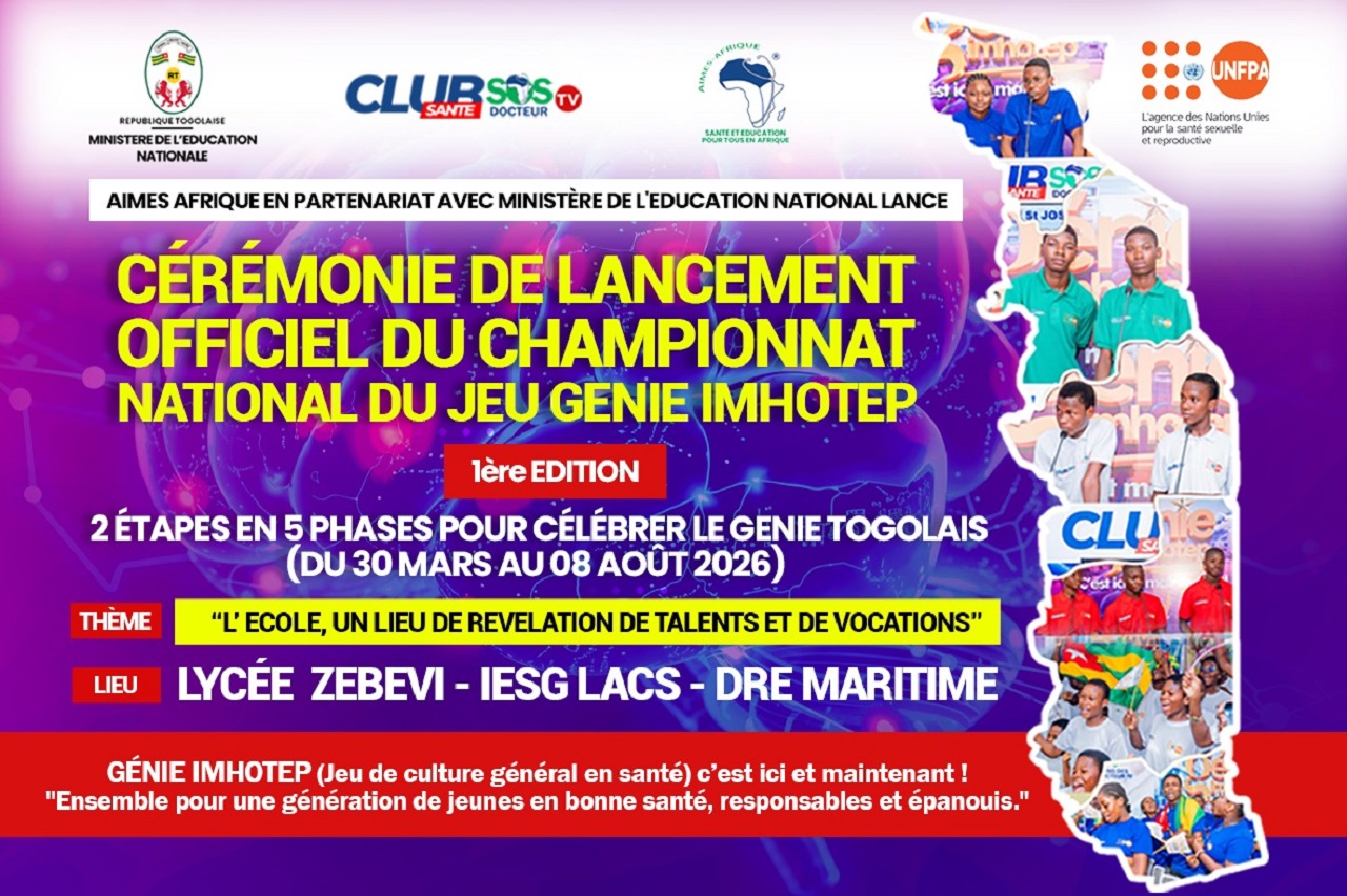 Simple compétition interscolaire au départ, avec une ambition simple, stimuler la curiosité des élèves autour des enjeux de santé, le jeu « Génie Imhotep », initié par SOS Docteur TV, prend désormais une dimension nationale. Avec sa première édition, lancée le 30 mars 2026, l’initiative s’impose comme un rendez-vous éducatif d’envergure au Togo.