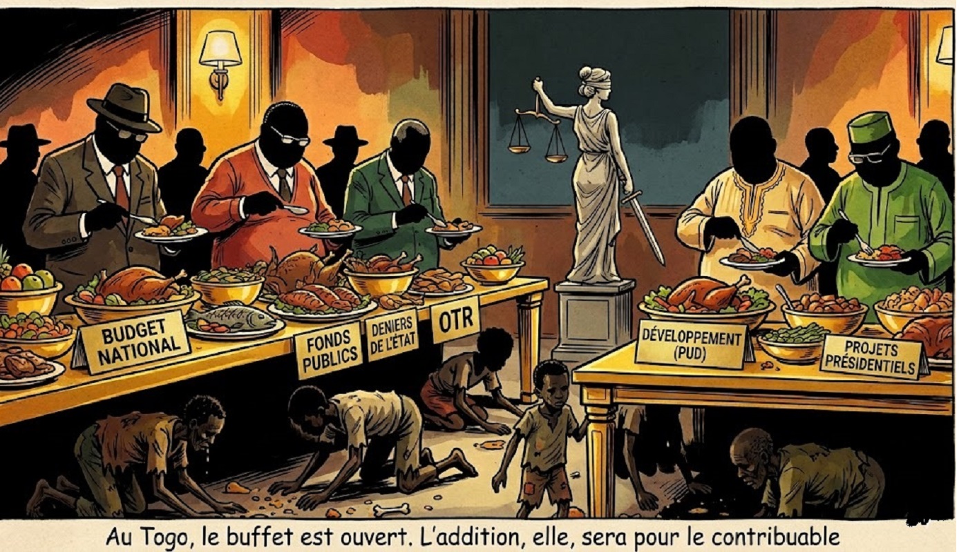 Il n’y a vraiment qu’au Togo que, lorsqu’on crie « au voleur de deniers publics ! », la justice ajuste tranquillement son bandeau… pour être sûre de ne rien voir. La célèbre dame à la balance, censée peser le juste et l’injuste, semble avoir développé une spécialité locale : traquer avec zèle les petits voleurs de poules, tout en laissant filer les gros poissons, sans doute trop lourds pour sa balance, ou trop bien introduits pour être dérangés.